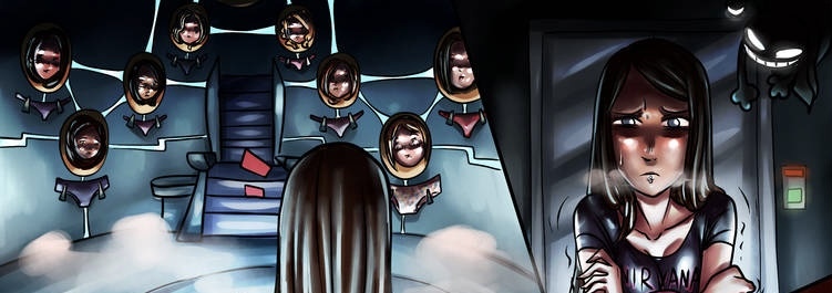 Trying to find a way out, she stumbles upon a room that was unlocked . As soon as she steps in, she realizes she’s in a room filled with the fallen women that she read about back on Earth.
